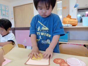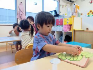 チーズがいっぱいの子、きゅうりがいっぱいの子、それぞれ思い思いにパンに乗せて・・・・・