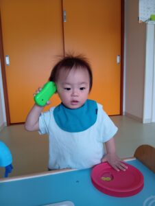 お部屋で遊んでいると、電話のおもちゃを発見!!