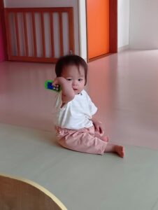 つかまり立ちをしていた子が1、2歩と歩けるようになり、日数を追うごとに自然な歩行ができるようになった時は自分のことのように嬉しく保育者同士で盛り上がりました♪