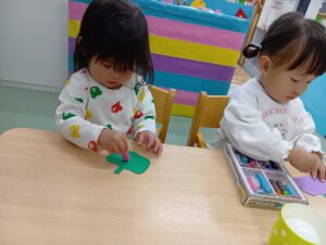 みんな集中してクレヨンぬりぬりしていますね☺