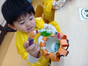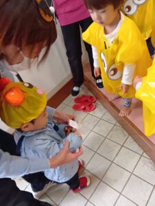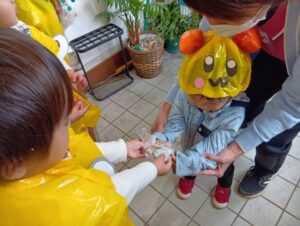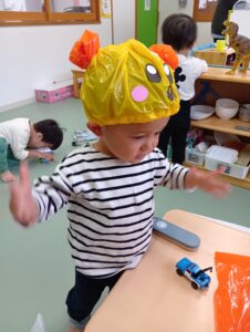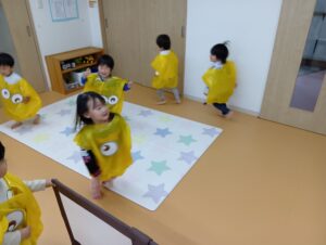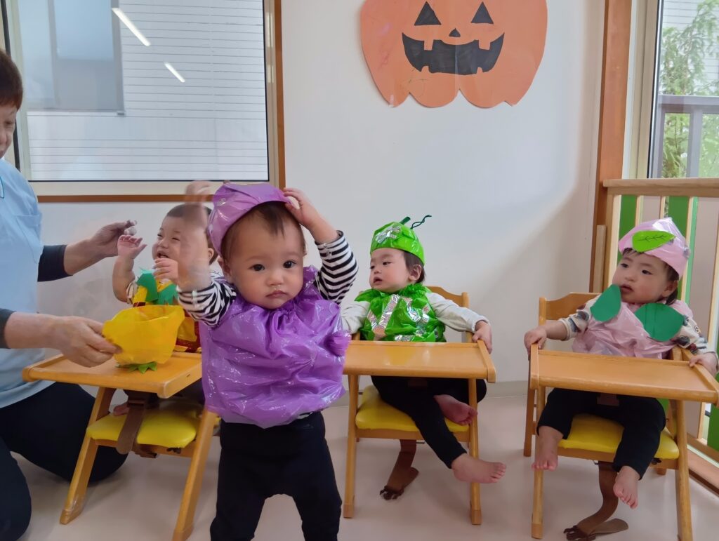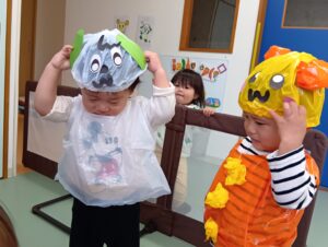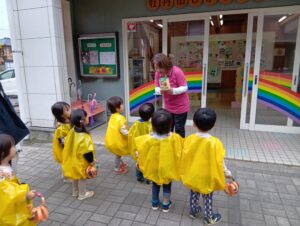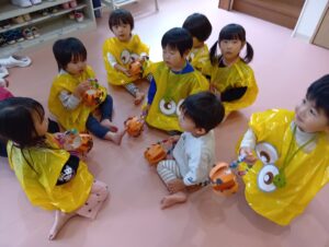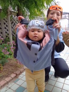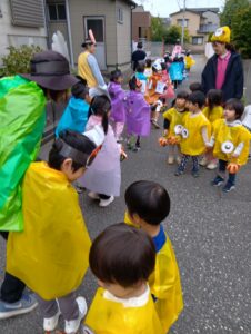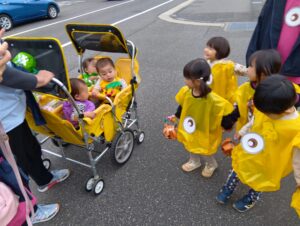 ひかりこども園のお友だちに会えたりと、今日はどこに行っても仮装をするクラスがいっぱいで「次は何の仮装かな??」と他のクラスの仮装を楽しみにしていたにじ組さんでした!