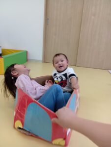 この日は公園へ。スプリング遊具に乗ってゆらゆらスリルを味わう子も!大爆笑して楽しんでいました🌟