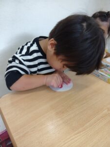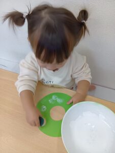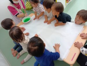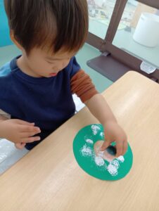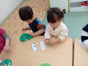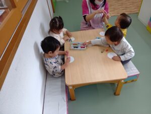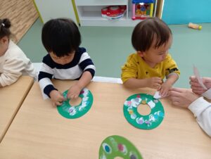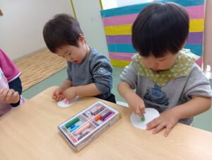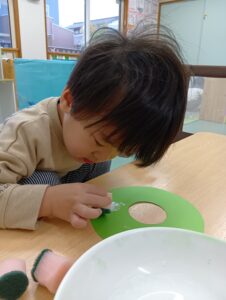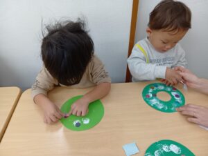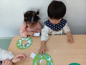 手先が器用になり、自分でシールを台紙からはがして貼ってみる子もいたりと成長が見られました!!