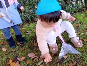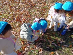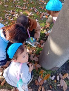 保育者の、「どんぐりあったよ~!」の声にすぐに集まってくる子どもたちがとっても可愛いです💕