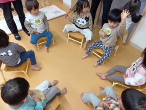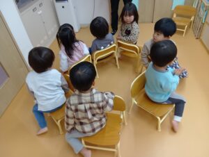 ママとパパに教えてあげるぞ!!とルールを覚えフルーツバスケットをしたり、椅子取りゲームをしました!
