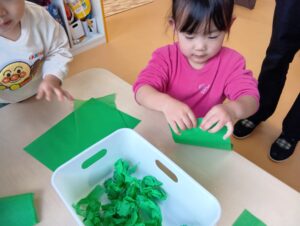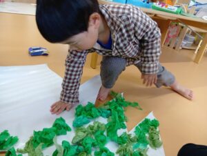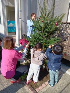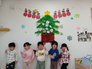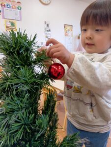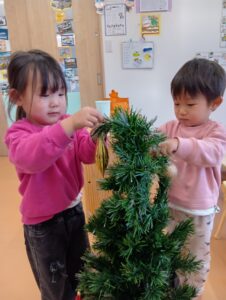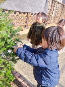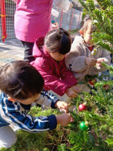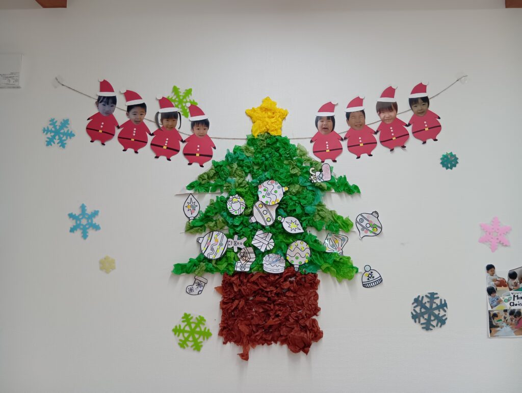 にじ組さんは、園庭の飾りつけと玄関の飾りつけ、そしてお部屋の飾りつけをしました🎄✨