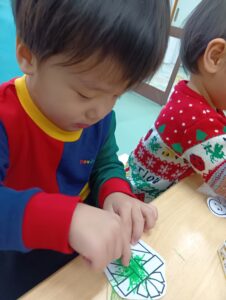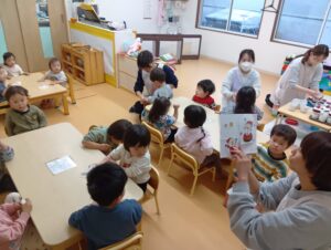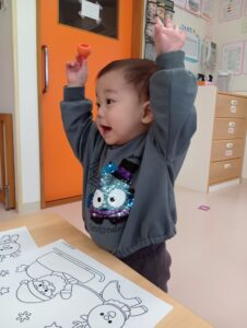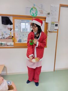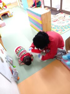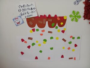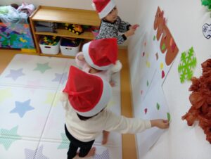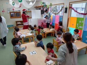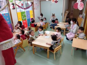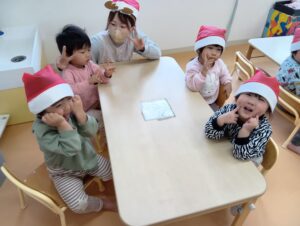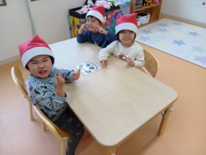 そら組では、おやつの前にクリスマスのお楽しみを行いました!