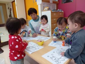 そのあとはクリスマスソングを流しながらサンタさんの塗り絵をして楽しみました♡