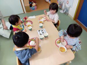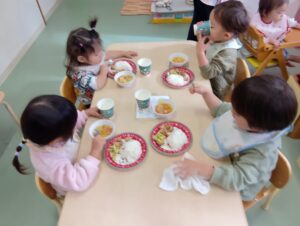 保育園でも、日中は各クラスでクリスマスにちなんだ楽しい活動を行い、給食は全クラスで可愛いクリスマスプレートに盛られたご飯を楽しい雰囲気の中食べました!