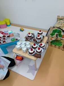 にじ組では、サンタさんに渡す大きなクリスマスケーキをみんなで作りました!