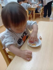 0歳児クラスはビスケットになんとイチゴもついてきました!🍓やったね💕