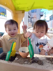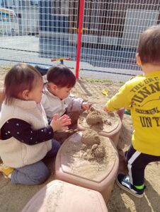 お砂場遊びが大好きなそら組さん。いつも楽しそうに遊んでいました!