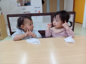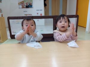 最近は、自分で手を拭いて準備して待ってくれる子もいます!✨大きくなったなあと感じる今日この頃です!