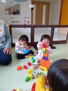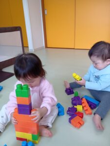 この日はブロック遊びをしました。連結が自分でできるようになってからは一人で集中して遊びこむ様子が沢山見られるようになってきました!